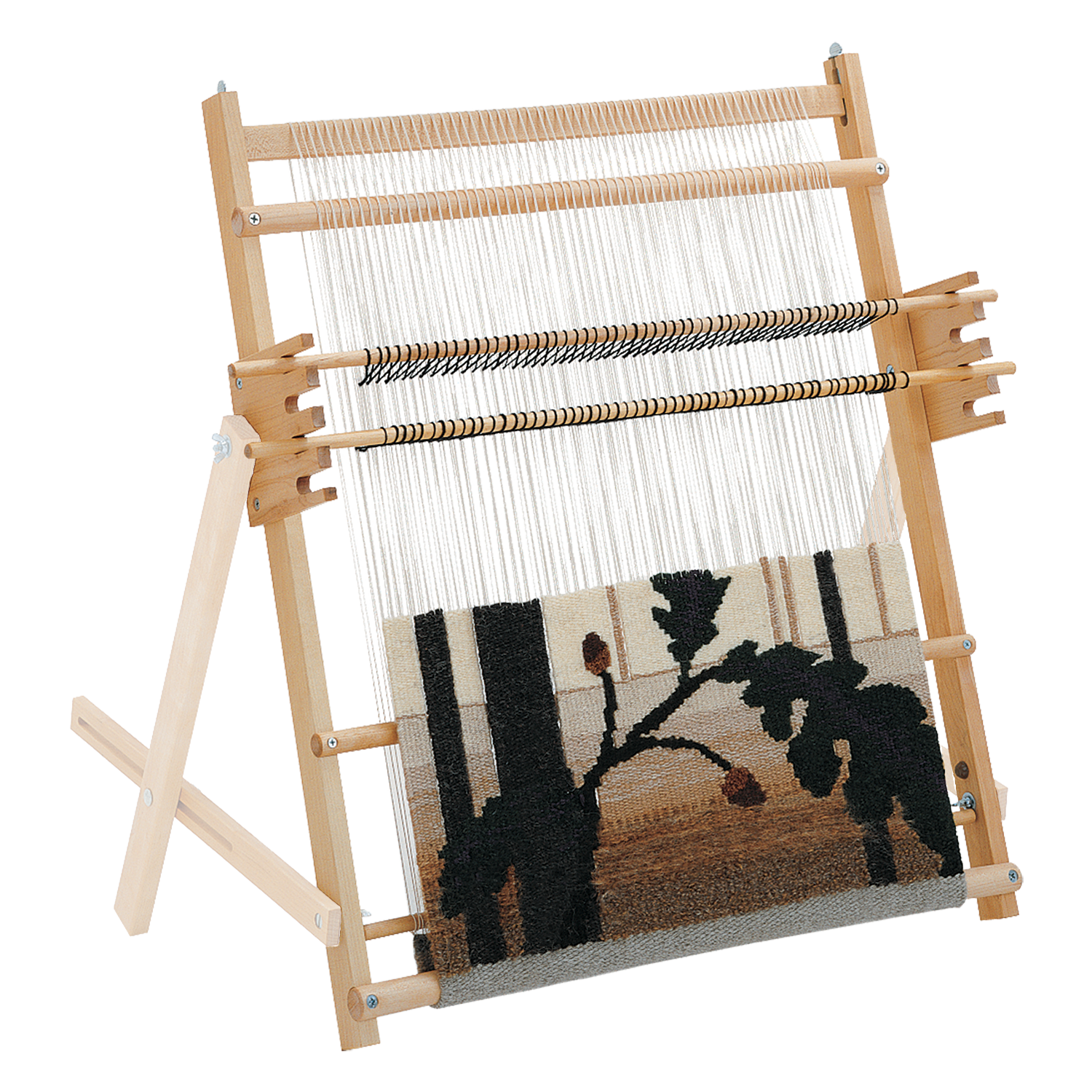 Make a bold statement with stunning tapestries, up to 25" wide and 60" long. Four heddle bars unlock complex patterns, and with the optional A-Frame Stand, you’ll weave comfortably and confidently.