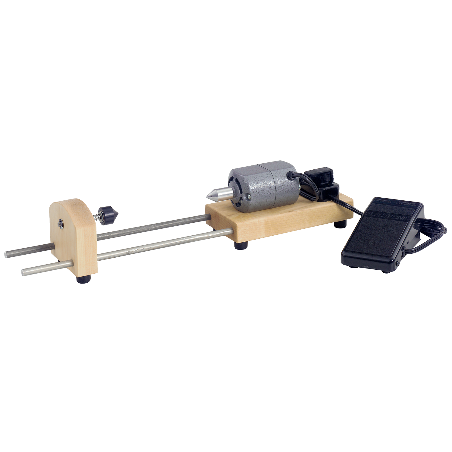 Our electric bobbin winder is double-ended and will accommodate bobbins, spools, and pirns up to 9″ long and with flanges up to 4″ in diameter. An electric winder saves time, especially when there’s a lot of winding to do. The speed of the winder is controlled by a foot-powered rheostat like that of a sewing machine.