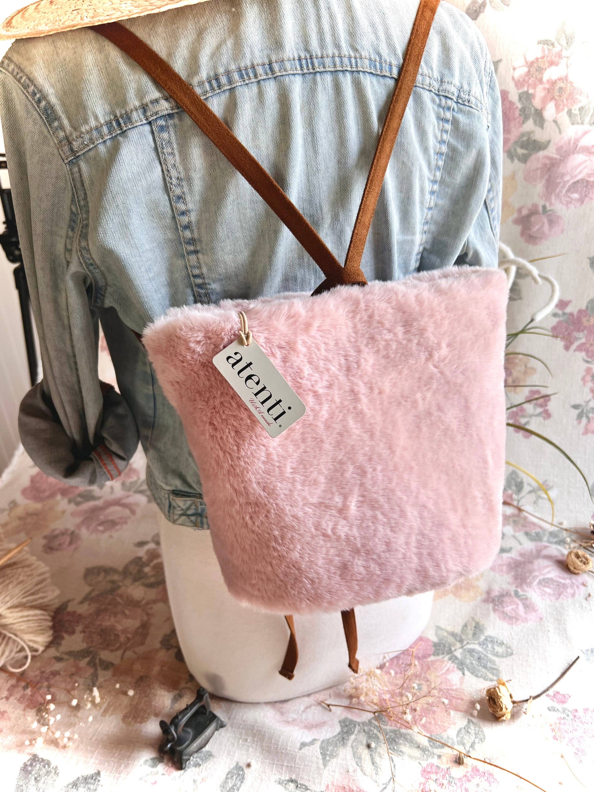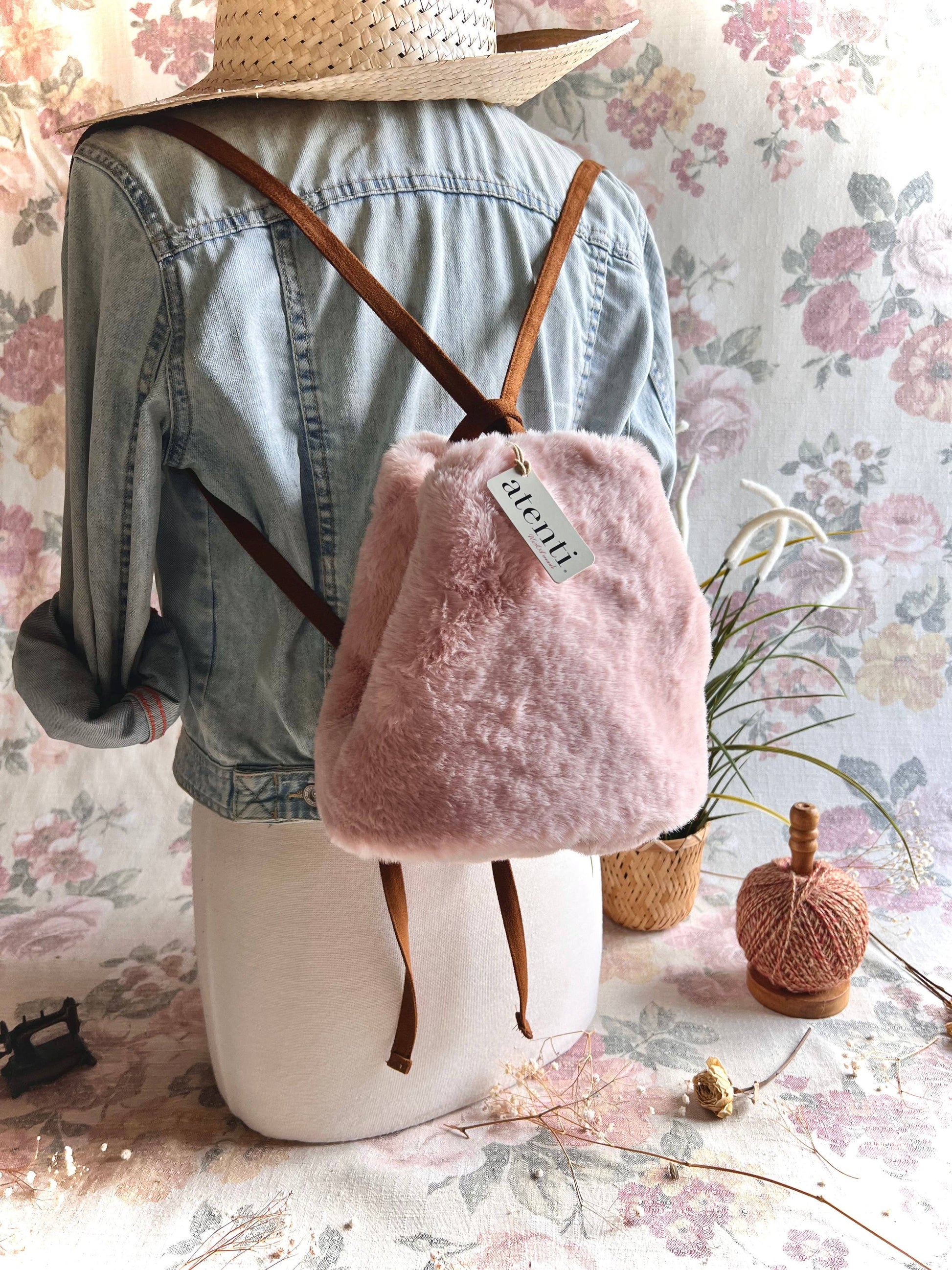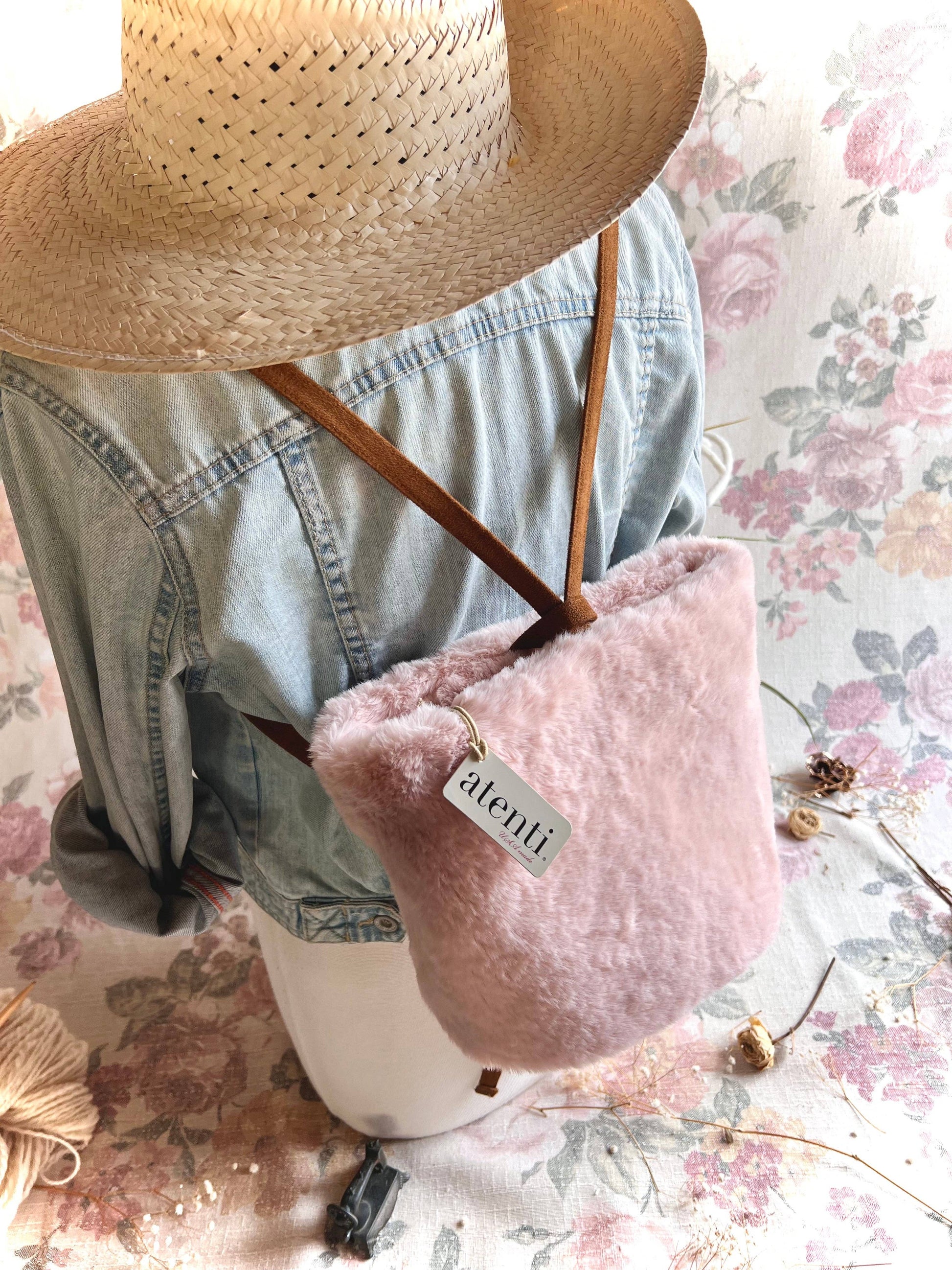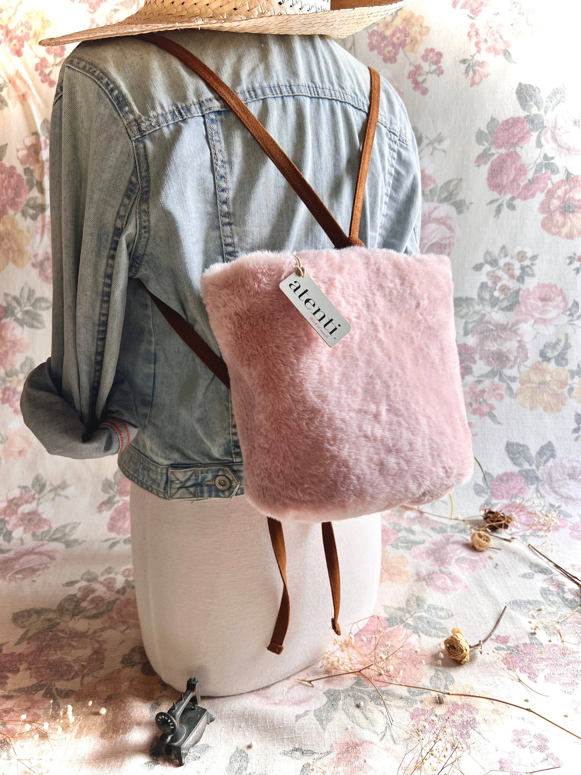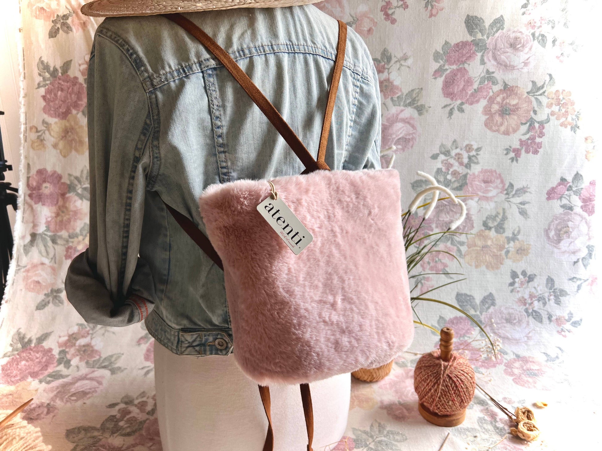 Faux Fur? We're fur real! A classic soft blush fur will have you tickled pink. Time for a wintery vaca! A timeless vintage meets modern style, this bag is sure to stand out. Take your style to the next level with our newest design - a hybrid of the Halle Bucket and Backsac. Combining the shape of the Halle with the versatility of a backpack, this bag strikes the perfect balance between playful and functional. With adjustable straps that ensure a personalized fit, you'll have all the room you need to carry your must-have items. Prepare for a daring adventure with this one-of-a-kind bag!