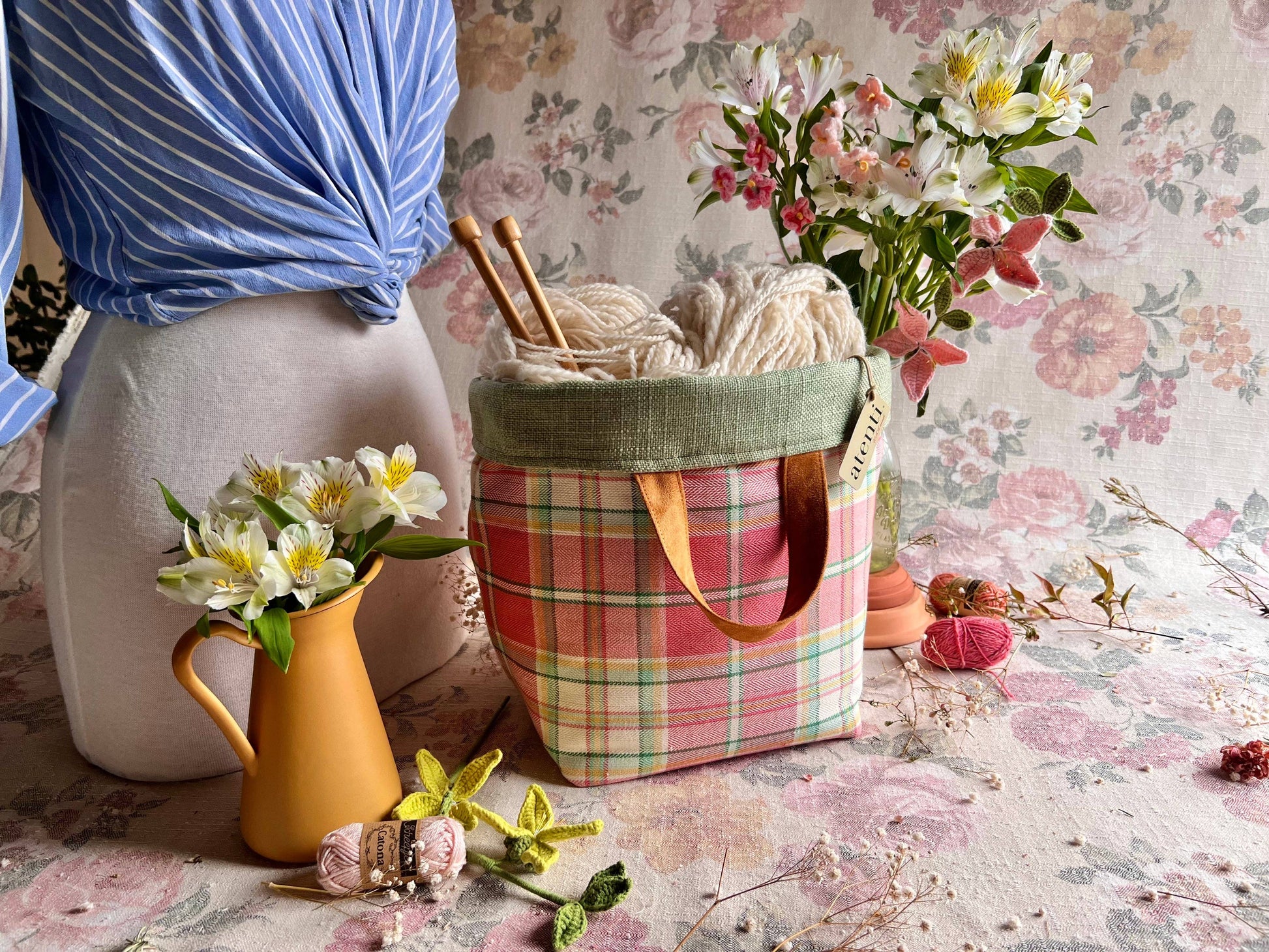 Knitting and Crochet Organizer Project Bag: Bubblegum Hope Basket