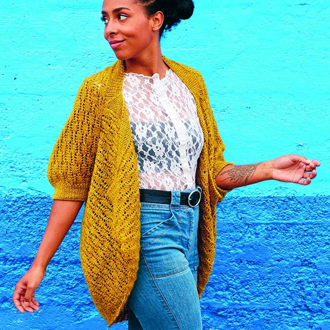 Modern lace. From the playful imagination of Jeanette Sloan come five patterns that let us explore the magical effects that come with simple lace techniques. The fun here is the variety of yarn weights and the gorgeous lace patterns—it all looks utterly fresh and clean.