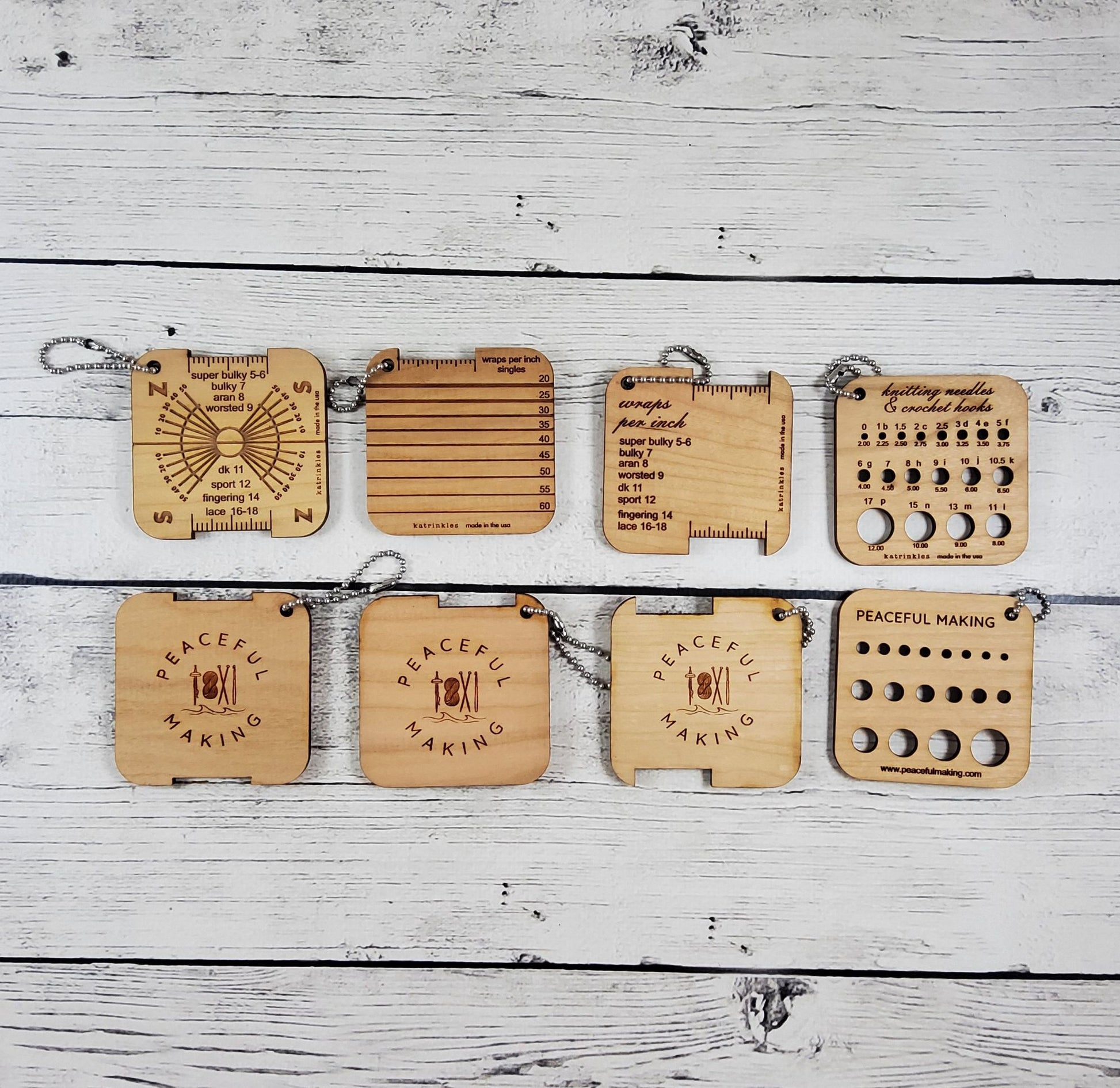 These lightweight, 2.5" square Mini Tools are compact and handy to have along, whether you tuck them inside your knitting bag or hang them from the ball chain loop outside for easy access.